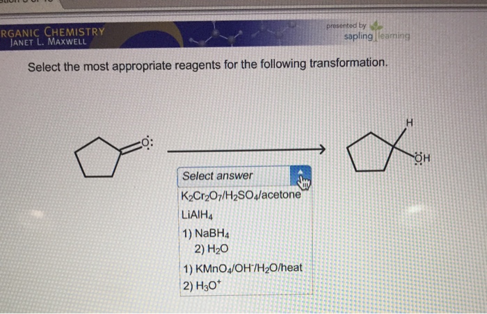 The appropriate reagent for the following transformation is. For the transformation shown select the most appropriate reagents to effect the change. If your institution is not listed please visit our Digital Product Support Community.